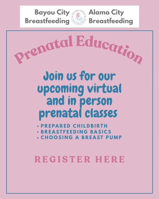Thank you for your interest in Bayou City Breastfeeding's prenatal education classes! We are currently offering three classes: