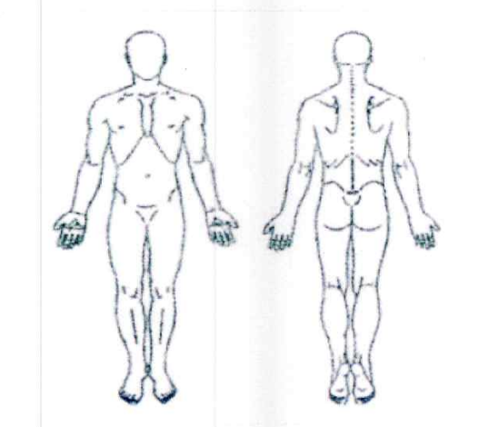 On the body diagrams to the right, please indicate your areas of symptoms by drawing in the appropriate symbols.
