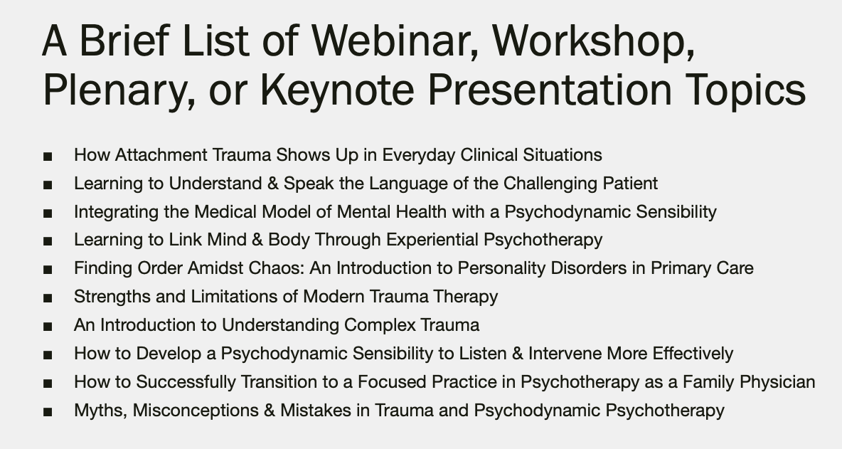 Complete this form if you would like to request training or a custom educational event with Dr. Sharma, or if you would like to receive updates on future offerings for continuing education. Applicable to physicians, allied health professionals, licensed professionals in the counselling/therapy field, clinics, and organizations.